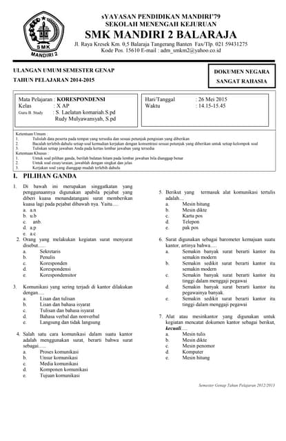 Soal uts korespondensi kelas x semester 2. We did not find results for: Maybe you would like to learn more about one of these? Check spelling or type a new query.